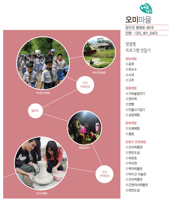 (사)양구군농촌체험관광협의회 | 주소 : 강원 양구군 남면 양남로 319-31 | 대표전화 : 010-9990-0957 | 전화 : 033)482-1427 | 팩스 : 033)481-3312 | 사업자등록번호 : 221-82-16162