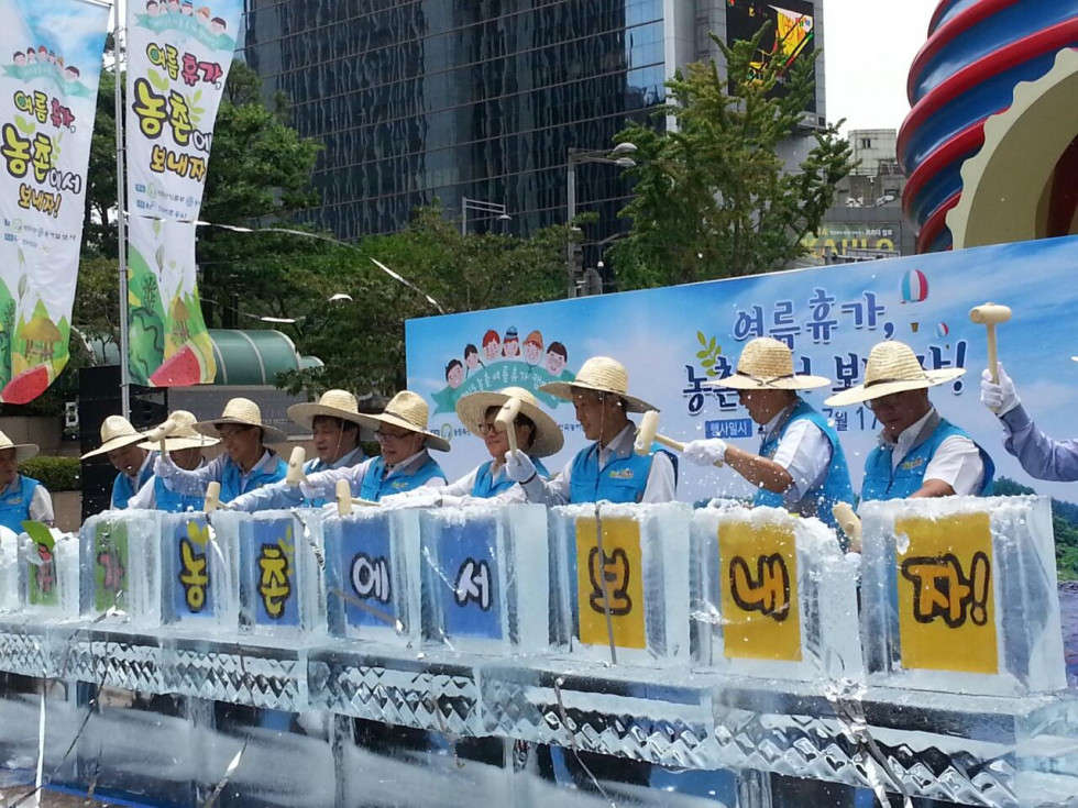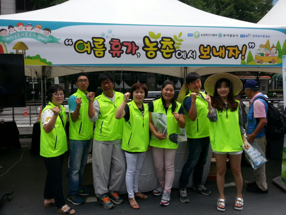 7월17일 청계광장에서 "여름휴가캠페인"행사에 참여해서 농촌에서 휴가보내자라는 내용으로